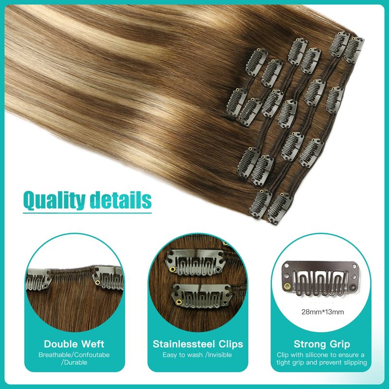 - [Quick and Easy to Put or Remove]Clip in hair extensions is easy and quick for adding volume and length. Anyone can do it. The clip in hair is convenient and comfortable to wear and can be used repeatedly