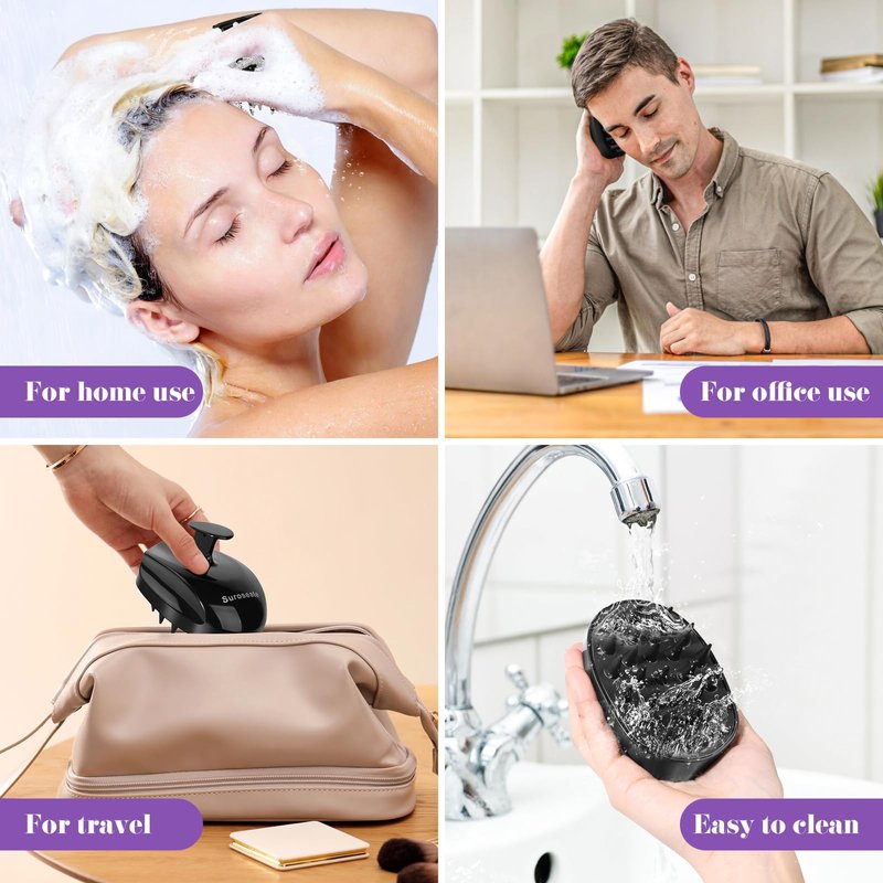 - WORK WITH ANY HAIR TYPE: Whether you're a man or a woman or child short or long, thick to thin, curly or straight, wet or dry hair. Suroseate scalp scrubber is the right choice for you