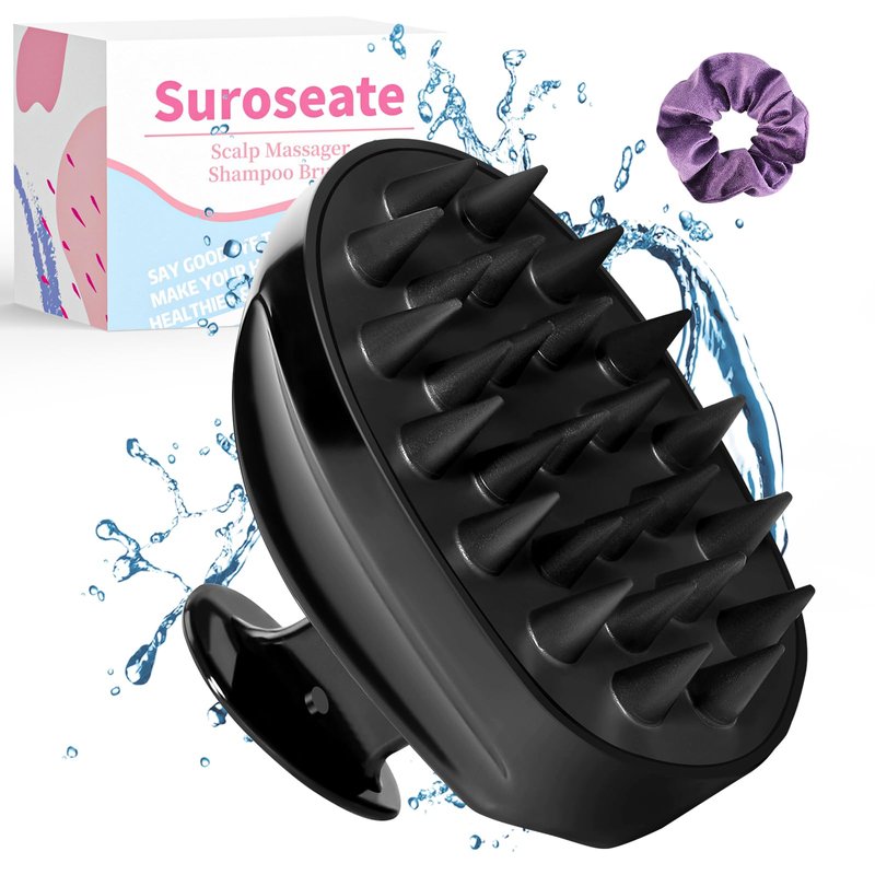 Suroseate Scalp Massager Shampoo Brush with Soft Silicone Bristles for Hair Growth, Scalp Scrubber Head Massager for Dandruff Removal, Shower Hair Brush for Women Men Kids Wet Dry Hair, Black