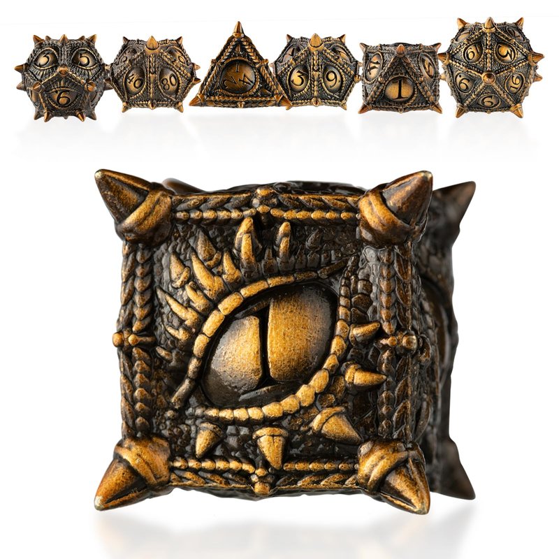 Surpass DND dice Metal dice Dungeons and Dragons dice polyhedral dice Dragon Eye dice Set RPG dice DND Dragon dice Role Playing Game dice RPG dice Set Pathfinder dice Set (Golden dice)