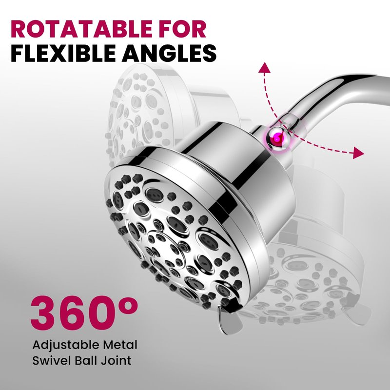 - 1-Minute Tool-Free Installation: This fixed shower head features universal G1/2" threads, which can be easily attached to any standard shower arm or extender, allowing for effortless installation – simply screw the head onto the shower arm holder