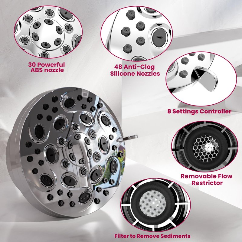 - 8 Spray Settings with High Pressure System:Our Surpzon shower head features 8 spray modes you can choose,offering flexibility when showering.With upgraded air-induction technology, our showerhead provides powerful spray even at low water pressure and flow circumstances. Enjoy the perfect combination of relaxation and comfort with our high-pressure shower head