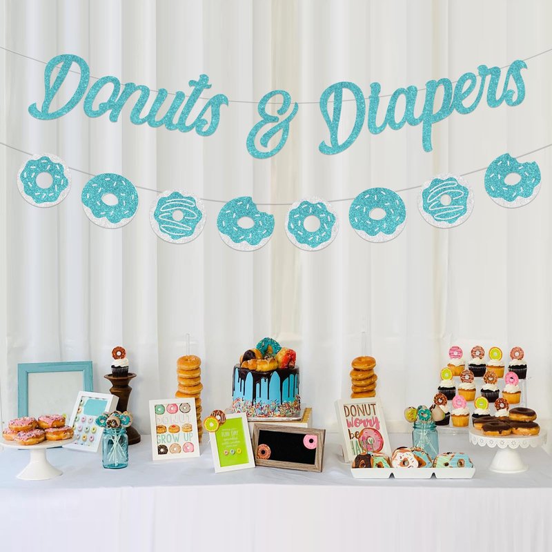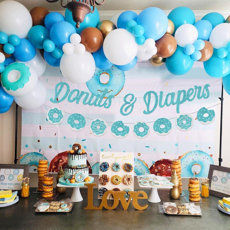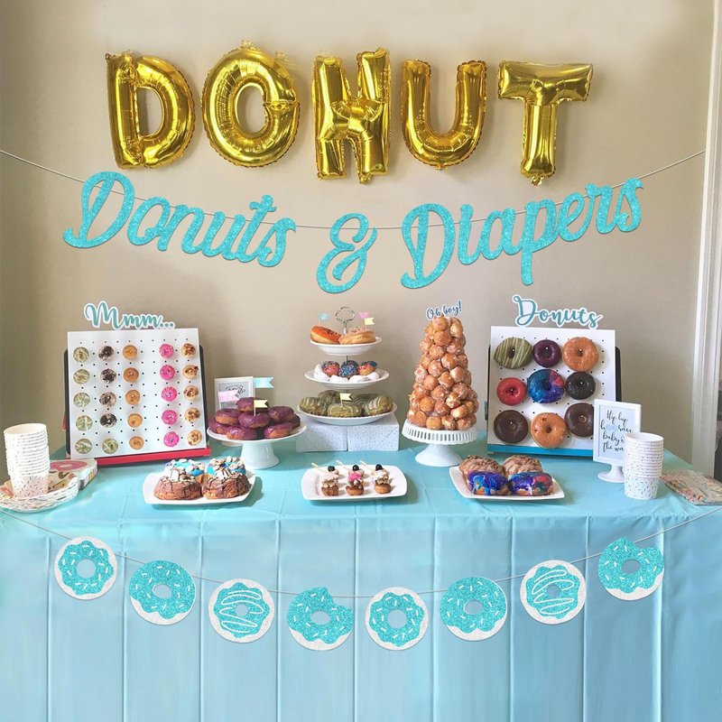 • Baby Sprinkle Decorations: Donuts and diapers decor designed as teal letters and donuts patterns is suitable for photo shoot to make great memories for you and your family and friends.