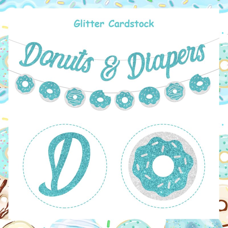 • Material: Donuts and diapers baby shower decorations are made of teal glitter cardstock, sturdy and durable.