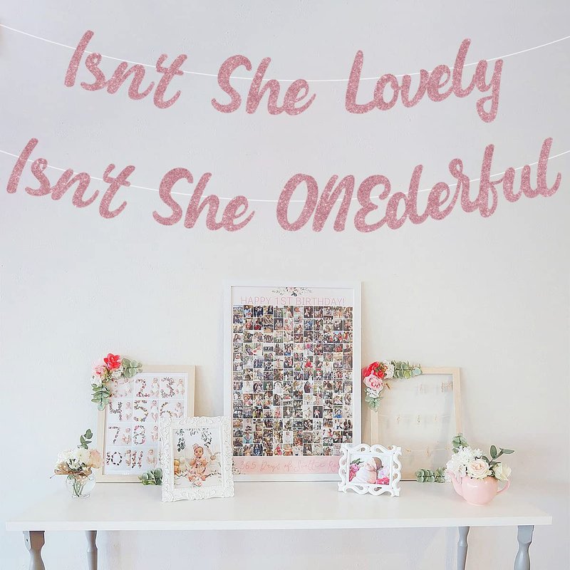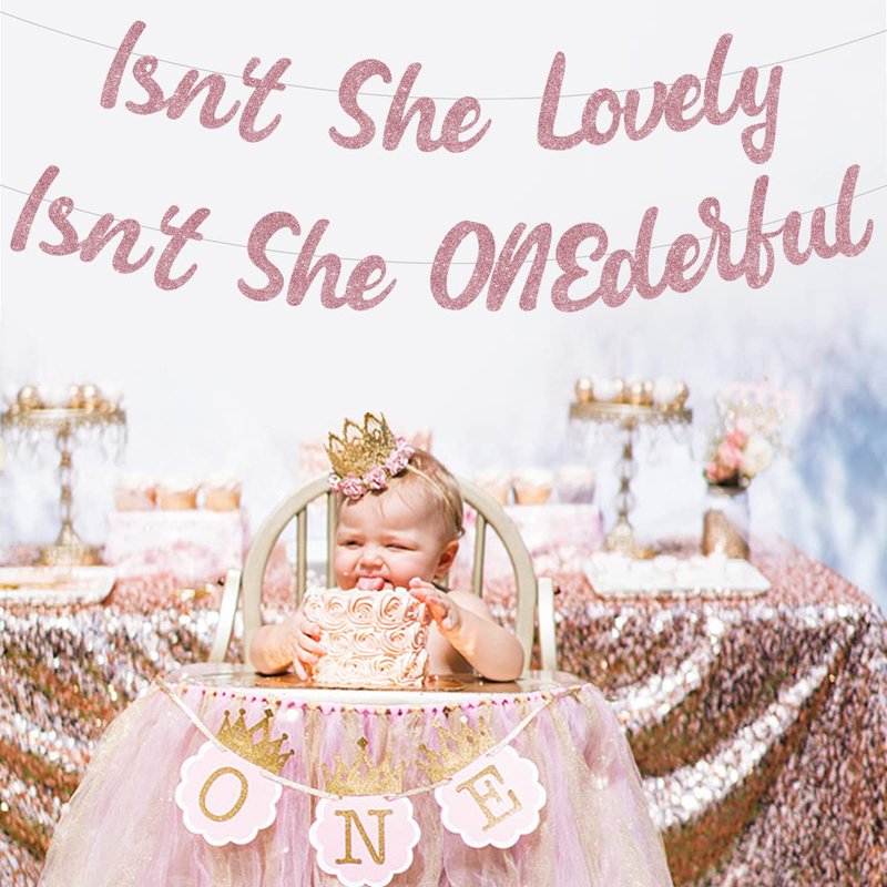 - Material: Isn't She Lovely, Isn't She Onederful banner is made of rose gold glitter cardstock. It’s a shiny addition for girls one year old birthday.