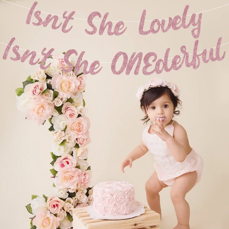 - First Birthday Banner: Isn't She Lovely, Isn't She Onederful banner is perfect for girls first birthday party, you can hang it on the wall, dessert table, windows, fireplace or other places to add a strong birthday atmosphere.