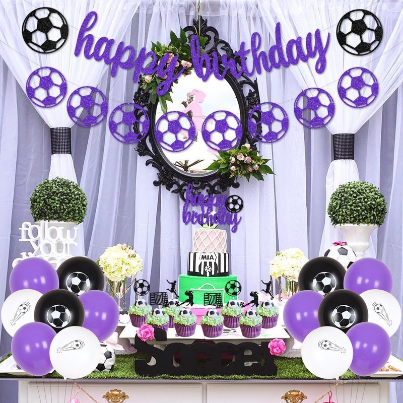 - Girls Soccer Birthday Party: Purple soccer ball will touch the hearts of female soccer lover and fans, surprise your girl with the purple soccer birthday party decorations!