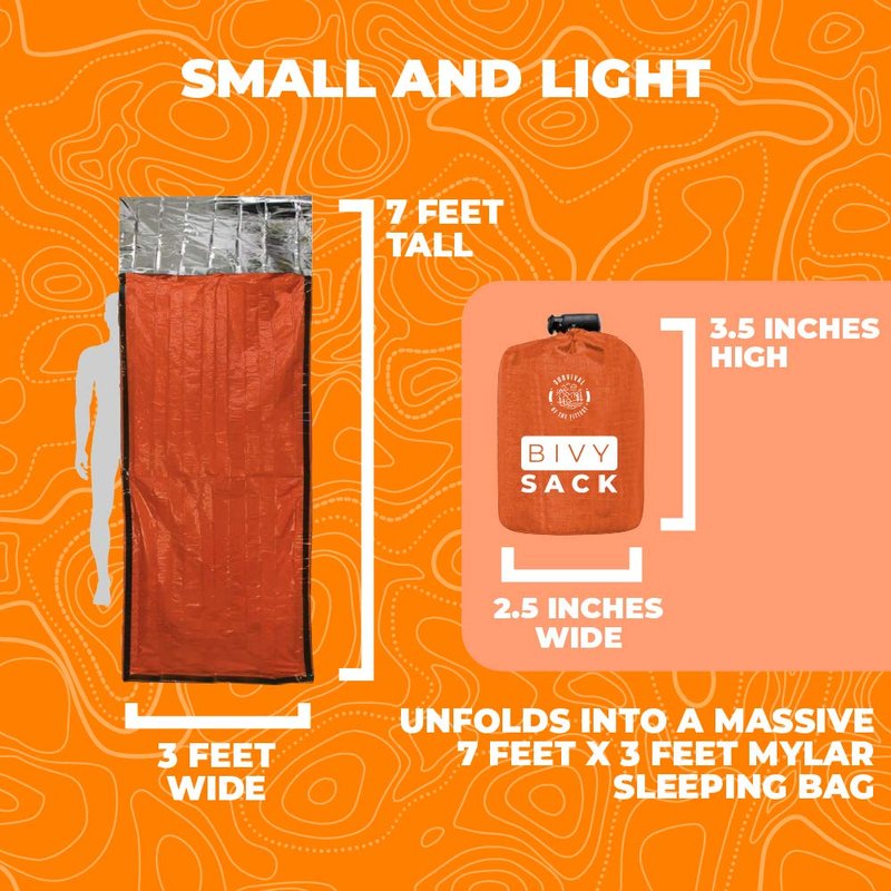 - SURIVE EXTREME CONDITIONS: The Survival of the Fittest bivy sack is a reusable emergency sleeping bag that is designed to keep you warm alive in the most extreme circumstances. Engineered for survival and made for adventure these survival sleeping bags are an essential piece in any emergency kit.