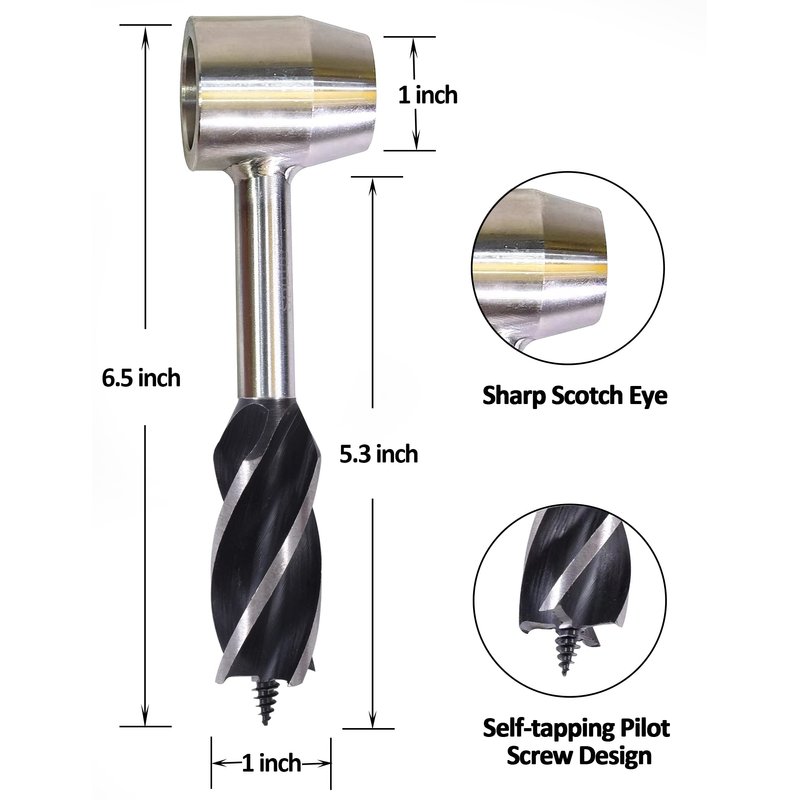 - 【Drilling Guide】First, Use a wooden stick through the scotch eye to gain leverage, so you can easily turn the auger drill, You will get a 1 inch diameter hole. If you need make the connection peg, The scotch eyed wrench is has a cutting point for a peg wrench, you can hammer into a branch for a peg the same size as the wood auger bit.