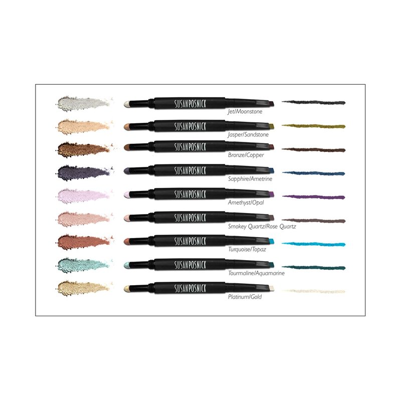 Susan Posnick Cosmetics Eyeliner with Dual Colors and Eyeshadow (Jet/Moonstone)– Dual-Ended Angled Pencil & Blendable Self-Dispensing Eye Shadow in Slender Container