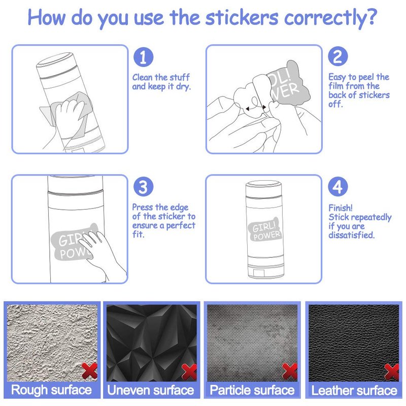 Usage:Clean the stuffs before use.They are very durable to flat surfaces rather than textured and would be a little fade out if exposed to the sunshine in a long time.