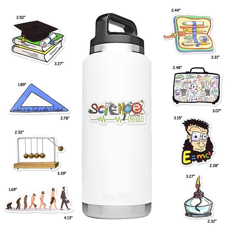 SUSIHI Science Stickers for Laptop School Stickers for Students Science Vinyl Stickers for Water Bottles Waterproof Stickers Bulk for Back to School (50Pcs)