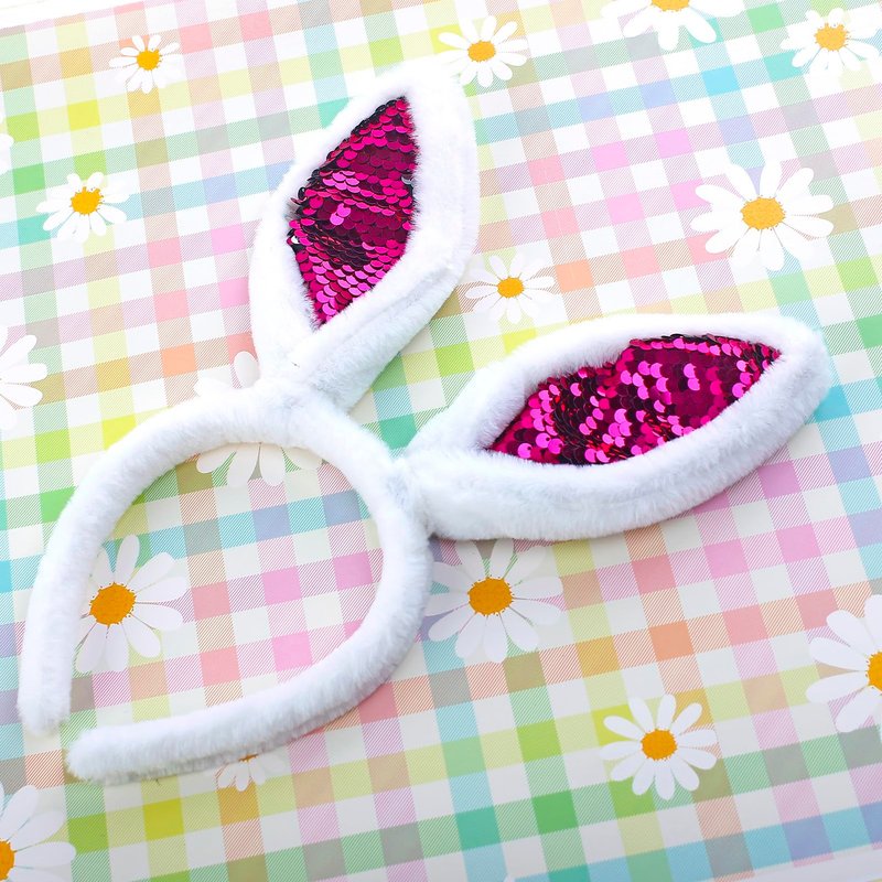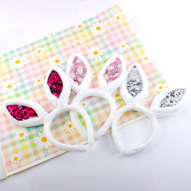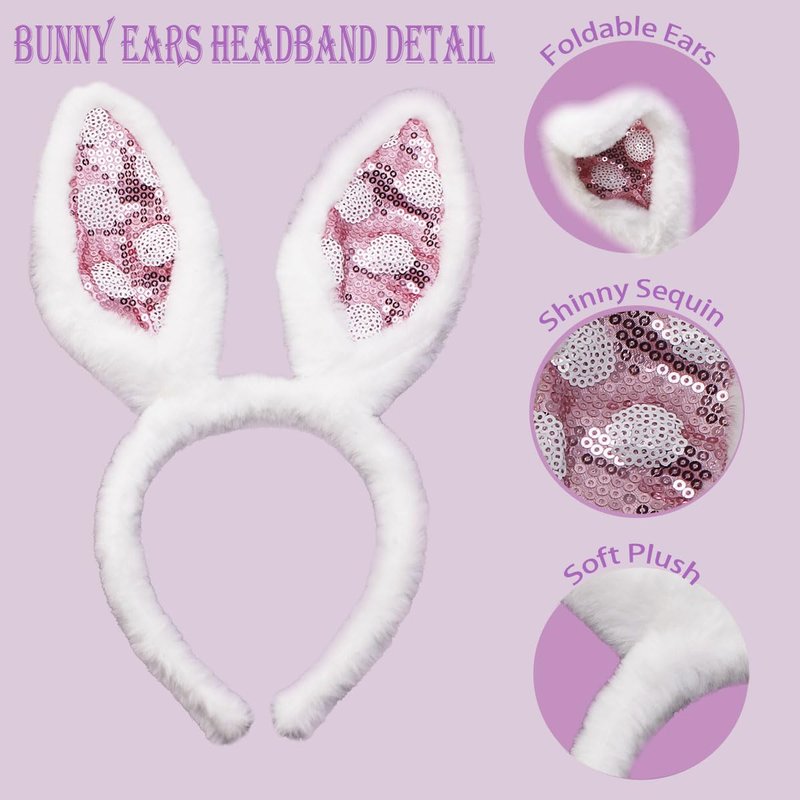 - Material: Made of plush fabric material, the Easter bunny ears bulk are solid and soft, realistic and fluffy;The ears are bendable, iron wire is inside the ears headband. The front sequins make the bunny ear shinny.