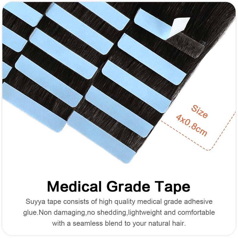 - 【Medical Grade Tape】The tape consists of high quality medical grade adhesive glue.Width:4cm,Non damaging,no shedding,lightweight and comfortable with a seamless blend to your natural hair.Flat to the scalp making them extremely comfortable to wear.