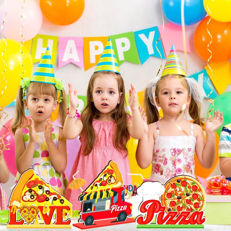 - Pizza Theme Design: with super cute pizza style patterns, exquisite printing technology, these colorful pizza birthday centerpieces are ideal for table decoration; The stylish design will charm your baby and keep good memories to you