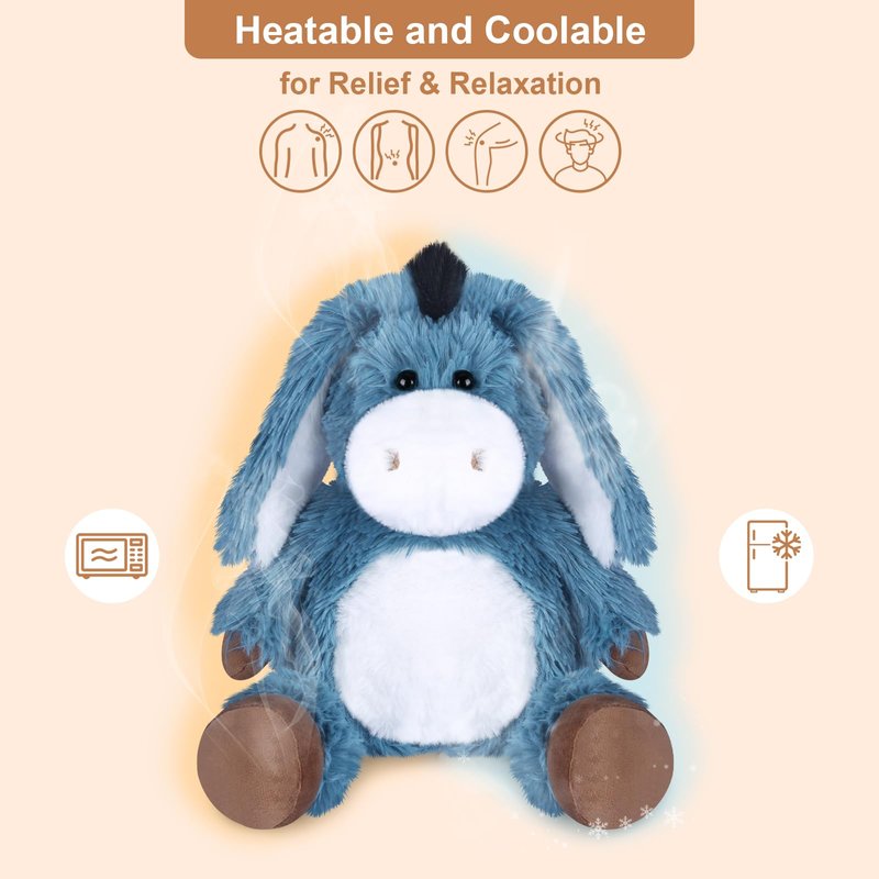 - Coolable Heated Stuffed Animals: Filled with natural flaxseeds lavender, the donkey toy plushy doubles as a microwavable heating pad! Just pop the kawaii donkey in microwave, the heatable stuffed animals deliver up to 20 mins' soothing moist heat to deal with kinds of of pain, such as soreness, neck, shoulder pain etc! What's more, you can also use the donkey plush toys as a cold pack to cool down the temperature and enjoy around 10 mins' cold therapy toease bruising, swelling, and sprains