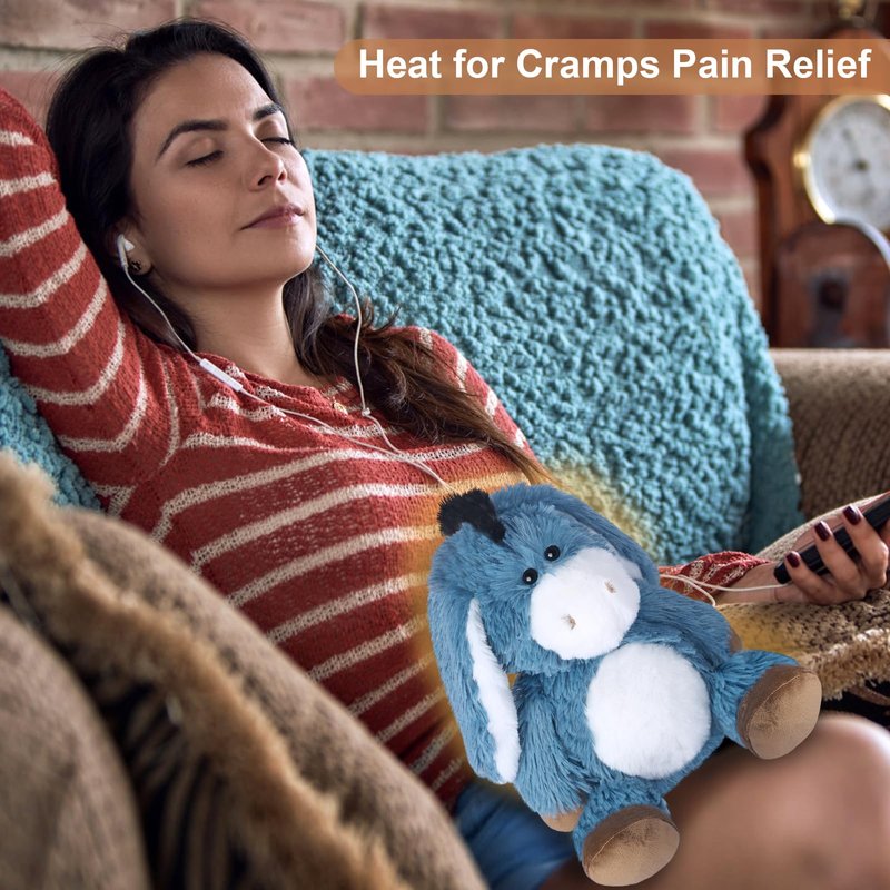 - Say Goodbye to Monthly Discomfort: Don't suffer alone, when you're facing menstruation, let this menstrual heating pad ease you! Just microwave our stuffed donkey plush toy! It can turn into a period heating pad for cramps, releasing soothing moist heat to promote circulation and ease cramps, which is a perfect first period gifts for girls