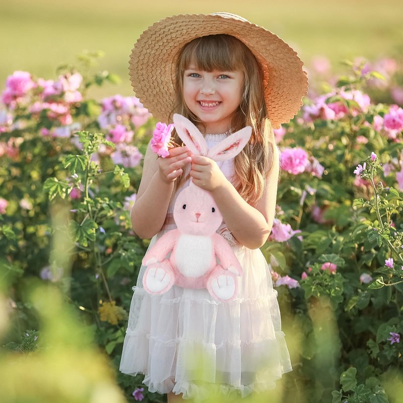 - Engaging and Lovable: Embark on a journey with pink stuffed animal bunny! The rabbit stuffed animal for anxiety offer children a comforting sense of security and foster emotional growth,as soft stuffed animal definitely the best buddy when playing, napping, soothing boo boos, reading, bedtime or traveling! Also a great stuffed toys in boy & girl's bedroom