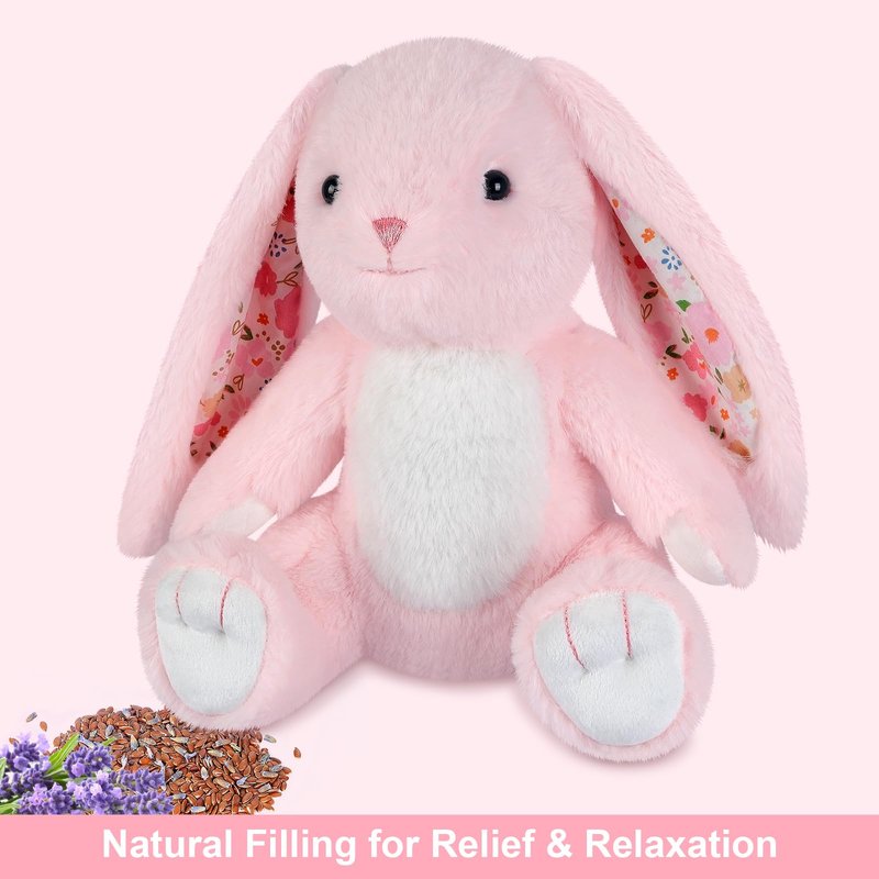 - Ease Distress and Anxiety: Get stress and anxiety relief by hugging this cute stuff rabbit toy pink plushies heatable stuffed animal! With lavender filling, this toy microwave stuffed animal emits a soothing lavender scent to help with anxiety & sleep! What's more, this emotional support stuffed animal provides a sense of security during difficult times, helps kids with positive emotions and ease distress when they're alone, the soft toys definitely a great helper for parents who ease their kids