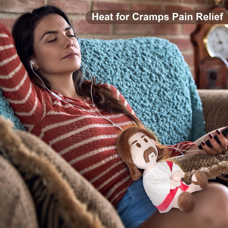 - Relieve Periodic Discomfort: Jesus cute heating pad microwavable relieves period cramps pain, deliver up to 20 minutes of deep, moist heat to provide relief for pain in your lower abdomen and all over your body, boosting circulation and easing menstrual cramps, making it a great stuff animal menstrual heating pad gift