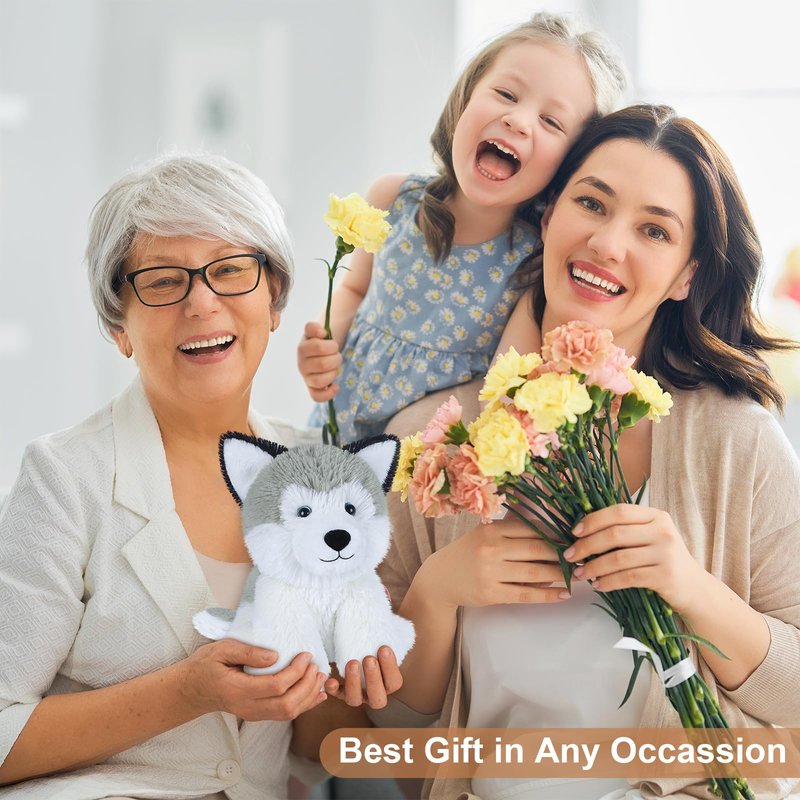 - Adorable Husky Gifts: If you are looking for a warm huggable cute plushie dog stuffed toy, our stuffed husky dog plush can bring back fond memories. As it's a perfect dog gift for husky lovers, or girls who want a microwave heating pad animal for period cramps relief! Also a best gift option for any occasion. At the same time not only a stuffed dogs gifts, but also a companion that can always be by the side of adults and children