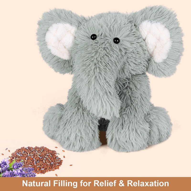 - Ease Distress & Anxiety: Get stress and anxiety relief by hugging or squeezing this elephant anxiety stuffed animals! With natural lavender fillings, this elephant stuffed animal can emit light lavender scent to ease stress and anxiety. Just a simple hug or squeeze, heated stuffed animals provides a sense of security and solace during difficult times. Definitely a perfect heating pad stuffed animal for adults kids