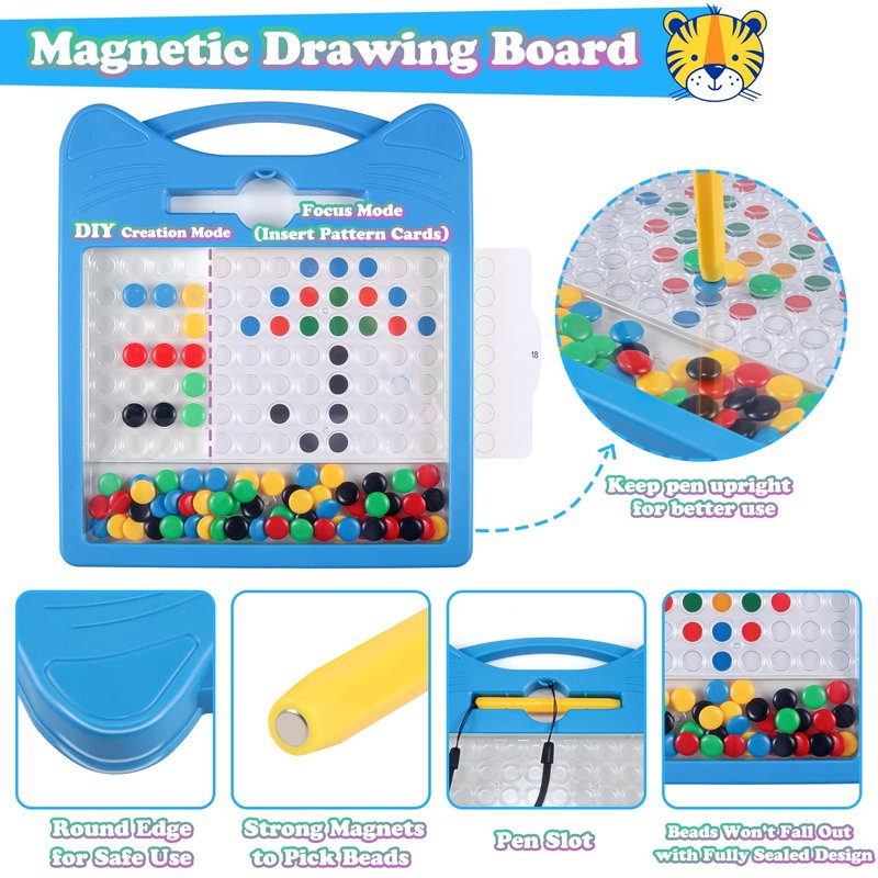 - Fun and Keeps Kids Focused - By moving the colorful magnetic beads inside the magnetic drawing board , kids would have great fun on spreading the imaginations and creating unique patterns. Occupy kids' hands, minds and eyes