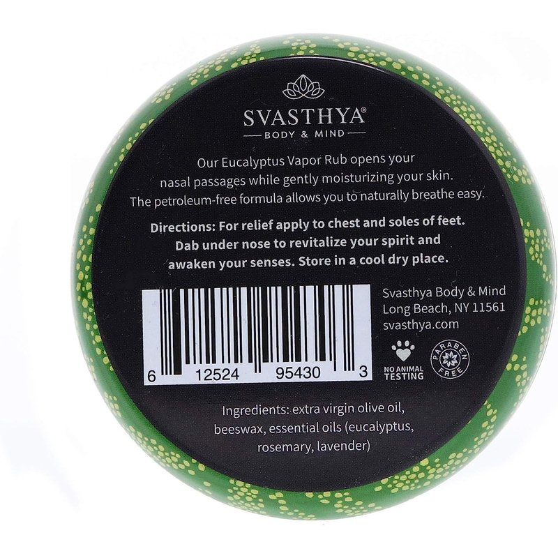 Svasthya Body & Mind Eucalyptus Vapor Rub - Opens Nasal Passages & Moisturizes The Skin, Cough, Stuffy Nose & Congestion Relief, Olive Oil, Beeswax, Lavender, Rosemary - Made in The USA, 2oz