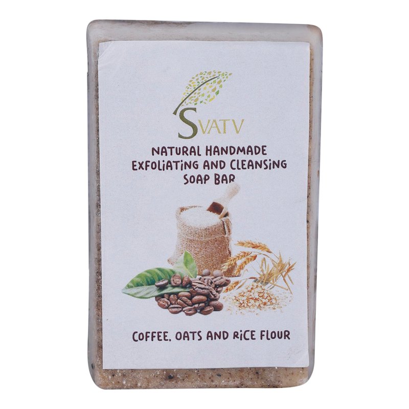 SVATV HANDMADE COFFEE OATS RICE FLOUR SOAP Get the ultimate SVATV natural soap bar from a range of handcrafted soaps from Svatv. Each Soap bar is unique, and soothing for your skin. The key to the Svatv Soap Collection is it’s perfect design. Each soap bar is truly a work of natural beauty, it is handcrafted for you and all your skin nourishment needs. They are carefully designed with the perfect blend of natural & herbal ingredients. Each handmade soap bar is created with a different vision in mind, allowing you to sample some of nature’s finest bounty. Each bar generates a rich, creamy lather that leaves your skin, intensely hydrated and nourished. The dreamy, natural scents are absolutely to die for. These make for an absolutely revitalizing, indulgent at-home spa set. They are pH balanced and cruelty free. The combined effect of these ingredients clears the skin and gives a natural glow, while fighting with degenerated skin. It produces a rich emollient lather that is good for all skin types. The scent is refreshing and will leave you with a fresh feeling for the rest of the day. The soap is great for exfoliating, cleansing, energizing, soothing and moisturizing skin soap. SVATV HANDMADE Soap Choose from a variety of handmade soaps. Crafted with CARE , Naturally PURE All-natural handcrafted soaps made with recycled flowers, complemented by the nurturing properties of vitamin E and essential oils for everyday indulgence. At Svatv , we champion empowerment through artisanal craftsmanship and sustainability. Each bar is a testament to our commitment to harnessing the power of nature responsibly. Usage: For external use only Store in a cool, dry place for freshness.
