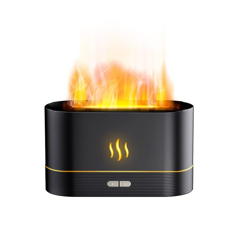 - [A Feeling of Cool and Fire] A realistic flame effect can be generated by the fire(smart LED lights) and the cool(mist from the diffuser). You can choose either “gentle flame” or “violent flame” by a short touch or a long touch of the button. With this Essential oil diffuser at night, like sitting near a fireplace, you will feel really relaxing and healing.