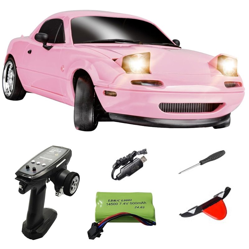 LD1804 1/18 Scale RC Drift Car, Mini Mazda MX-5 RC Model Car 2.4GHz RWD Miata RC Vehicles with Gyro for LED Lights for Adults Hobby Toys