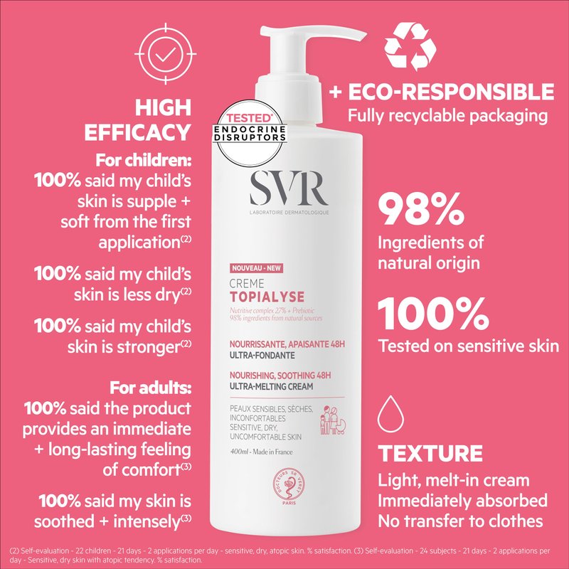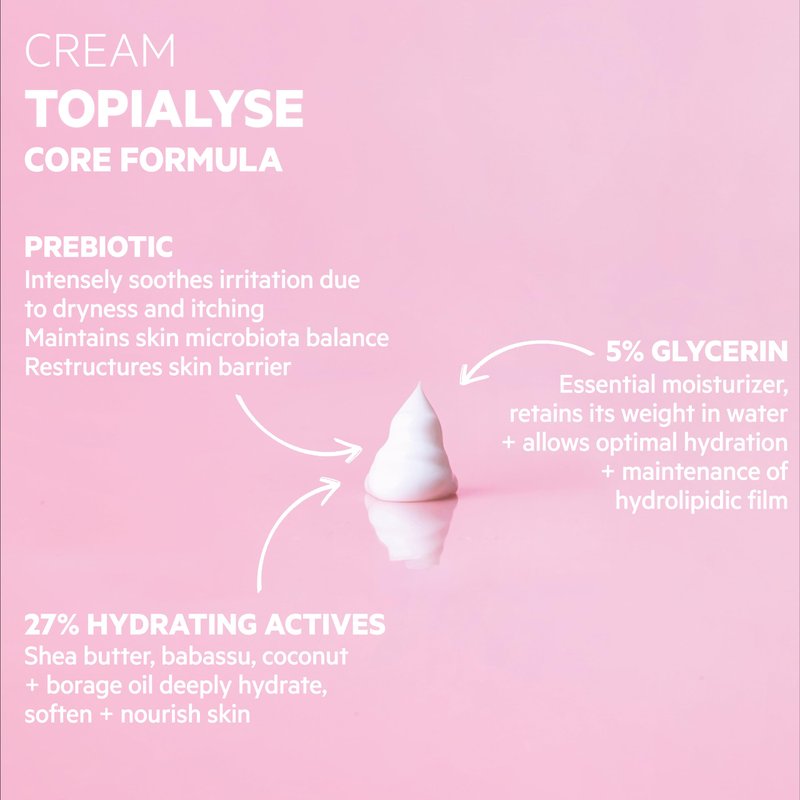 TOPIALYSE Crème is the skincare of choice for sensitive dry skin and for all the family. Its soothing, nourishing formula relieves feelings of tightness for immediate and long-lasting comfort.