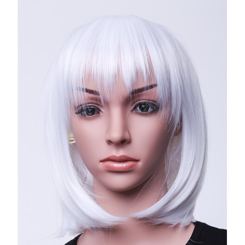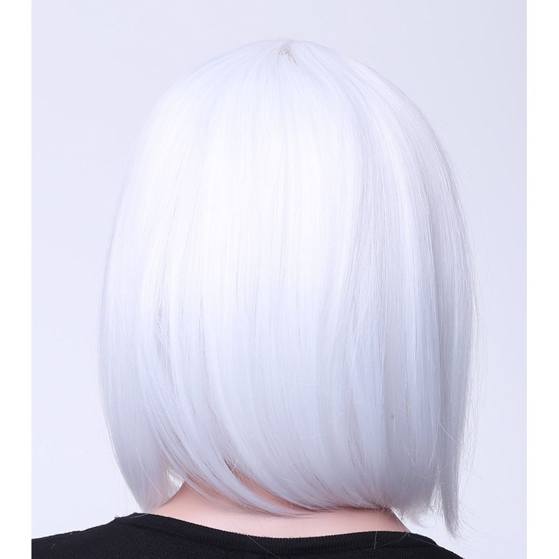 SWACC 11” Women Short Straight Synthetic Bob Wig Candy color Cosplay Wig Anime Costume hairpiece for Party with Wig Cap (White-12)