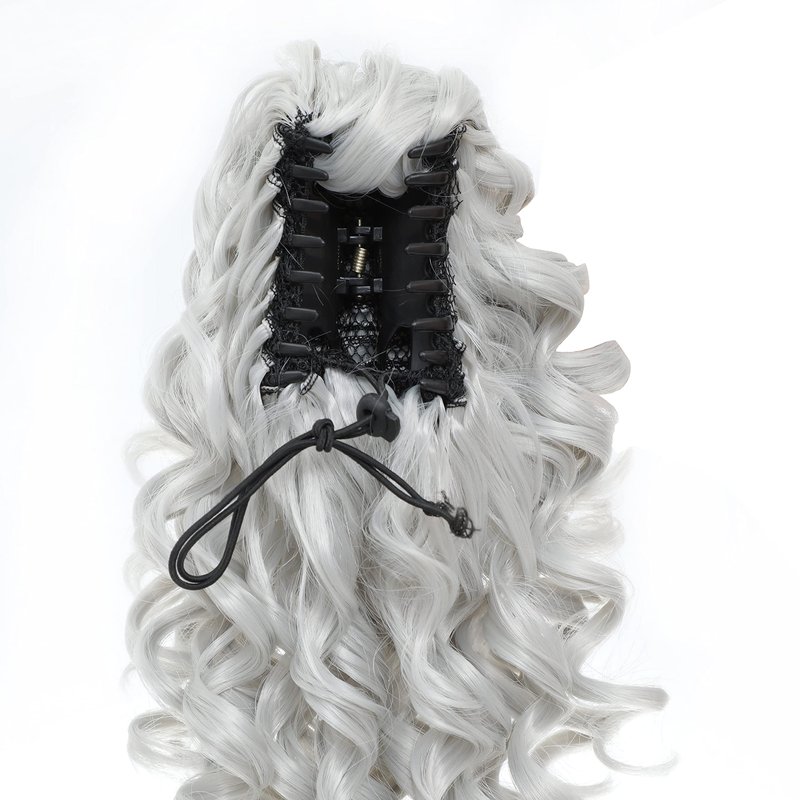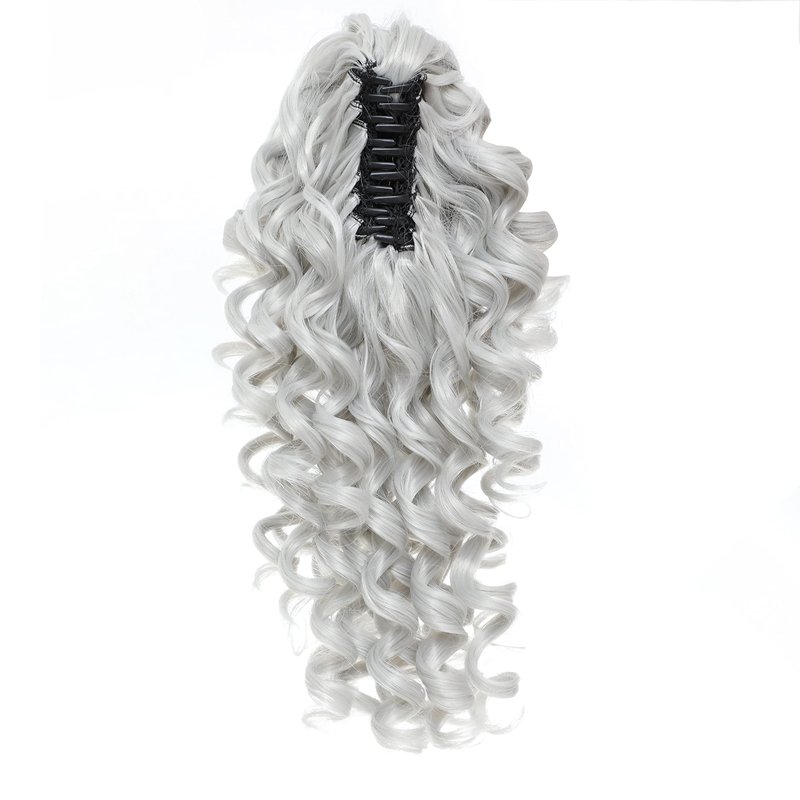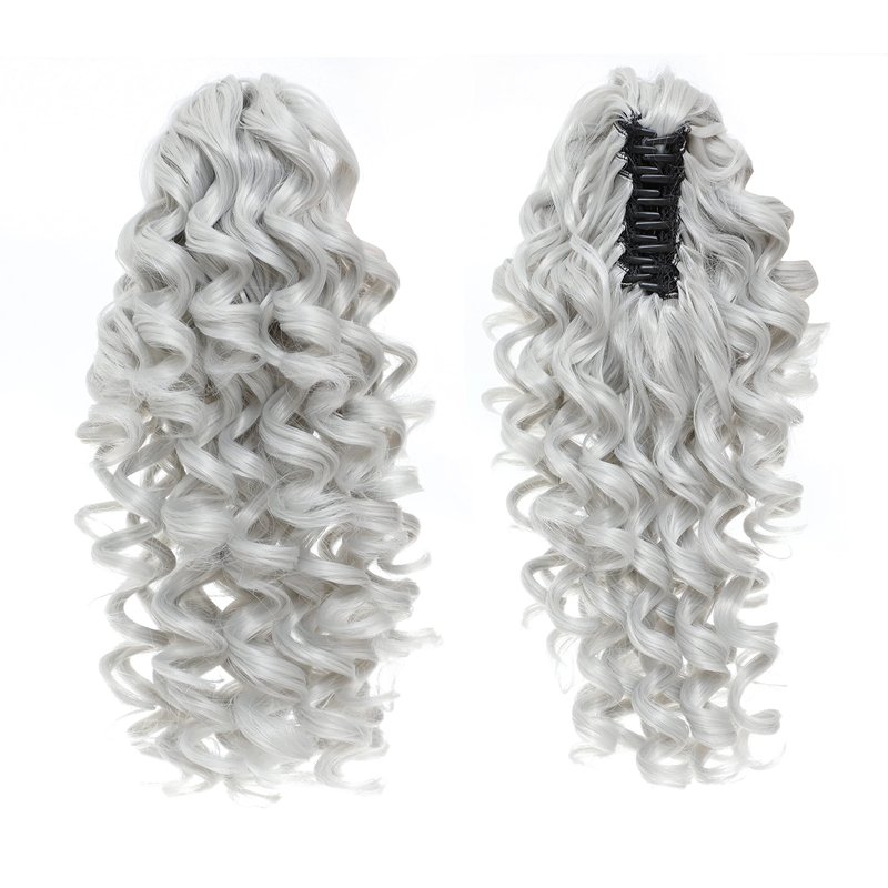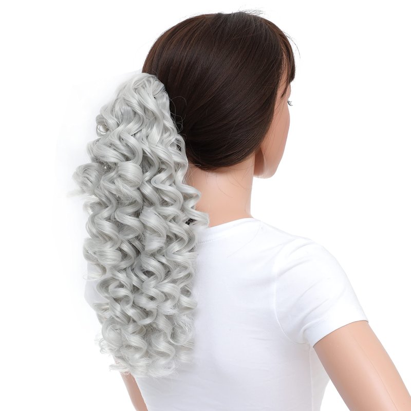 SWACC 12-Inch Ponytail Extensions Synthetic Clip in Drawstring Curly Ponytail Hairpiece Jaw Clip Hair Extension (Silver Gray)