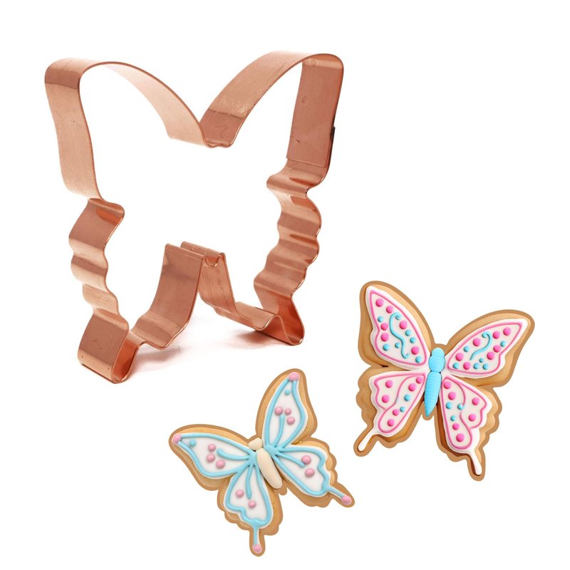 Soar into baking bliss with the Swallowtail Butterfly Cookie Cutter! This handcrafted, copper gem is a must-have for any cookie enthusiast or nature lover. At a dazzling 3.25 x 3.5 inches, this cutter will transform your favorite dough into the most enchanting butterfly-shaped treats. Proudly made in the USA, this high-quality cutter is perfect for creating delightful cookies or even for crafting with clay. Imagine the delight on your loved ones' faces when you present them with a batch of delicious, homemade butterfly cookies or a whimsical clay ornaments. Whether you're baking for a special occasion or simply indulging your creative side, the Swallowtail Butterfly Cookie Cutter is sure to take your creations to new heights. Elevate your kitchen with this stunning, functional work of art and let your inner artist take flight. Each cookie cutter is handcrafted in our workshop from heavy weight solid copper. This cookie cutter is built to last for many generations of cookie baking, fondant cutting, ornament making, or even use it for tracing quilt patterns. Made from very heavy weight copper to maintain shape while using and storing. Great for gift giving or as a centerpiece to a cookie bouquet! Each one is slightly different from the next as they are formed one at a time and hand soldered using lead-free silver solder. Listing is for one cookie cutter.