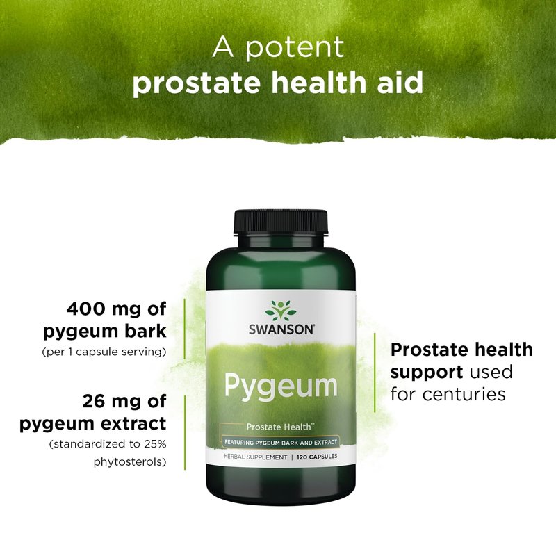 - Prostate health support: Swanson Pygeum is a natural herbal supplement designed to promote male prostate health