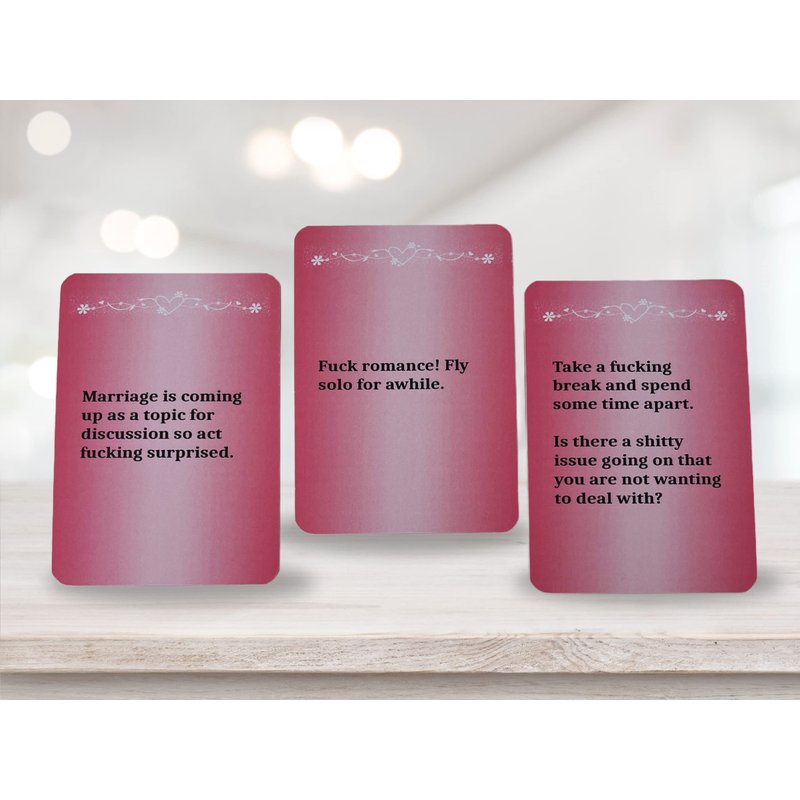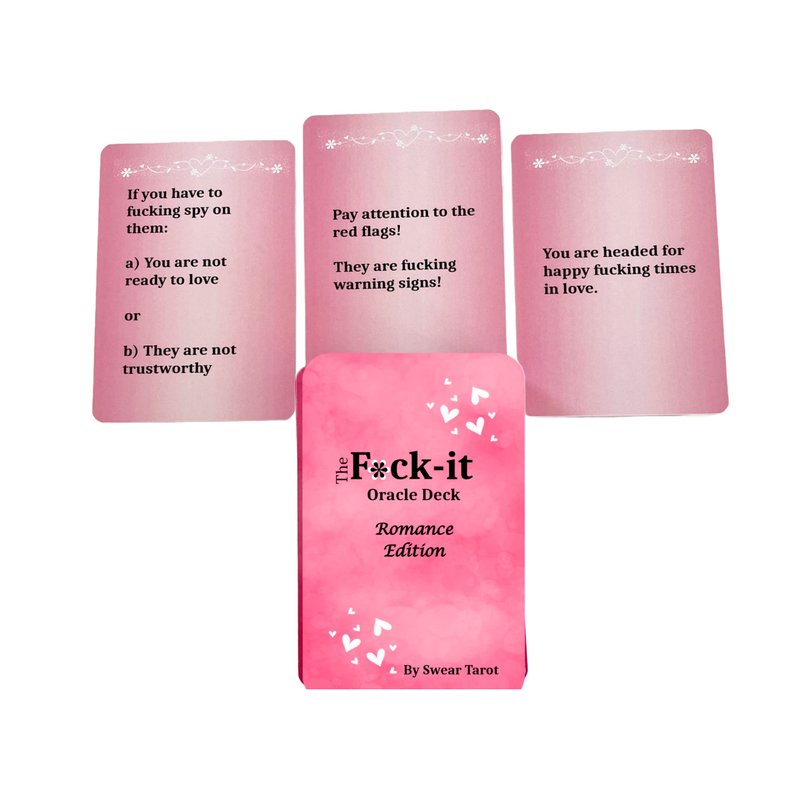 - HOW TO USE: Ask a question and pull 1 or 2 cards. You can pull a daily Fuck-it Romance Edition Oracle Card for relationships, soulmates, twin flame, spiritual,...all types of guidance! These are great ice-breakers for parties and social gatherings. Perfect for beginners or to use with intuition or Tarot Cards. These cards will give you unique and humorous guidance to everyday challenges that life can bring. Perfect for a gag gift as well!