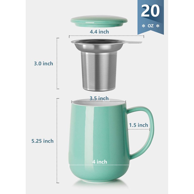 Sweese 20 OZ Porcelain Tea Mug with Infuser and Lid, Loose Leaf Tea Cup, Gifts for Tea Lover - Mint Green