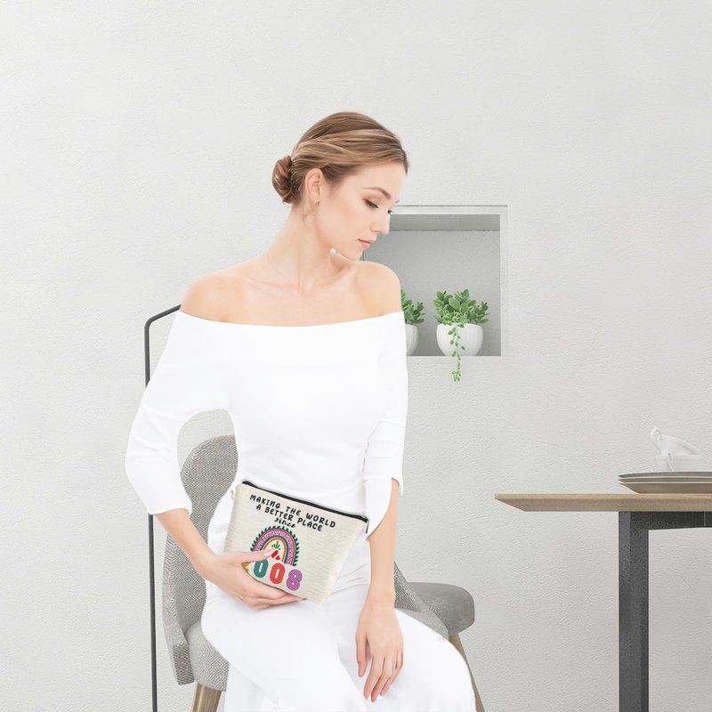 - HIGH QUALITY MATERIAL: Double-sided printied.100% Flax, soft, hardy & high quality, the makeup pouch feels very high quality, The background color is stain resistant and waterproof. The sliver zipper is high quality with anti-slip function and flimsy, Our birthday bag is also not easy to fade.
