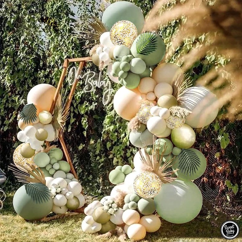 - MATERIALS TESTED IN THE USA: Sweet Baby Company is a self-financed, woman owned company. All Sweet Baby Co. products are professionally designed and tested with love. Your set comes with 141 pieces, all carefully packaged. As soon as your decorations arrive, check it and tell us if anything is missing so we can replace it fast before your event. There is no risk when purchasing this PREMIUM QUALITY sage balloon garland kit