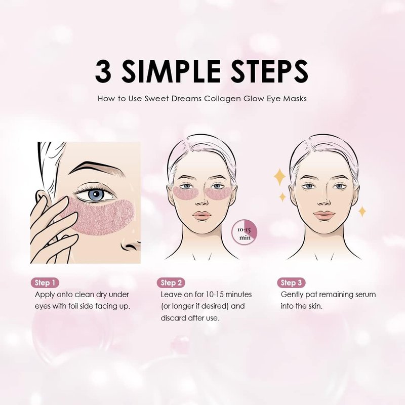 Sweet Dreams Collagen Glow Rose Gold Eye Masks l Under Eye Patches for Self Care Under Eye Patches Wrinkle Patches l Dark Circles Treatments - Collagen, Niacinamide, Hyaluronic aid, Peptides
