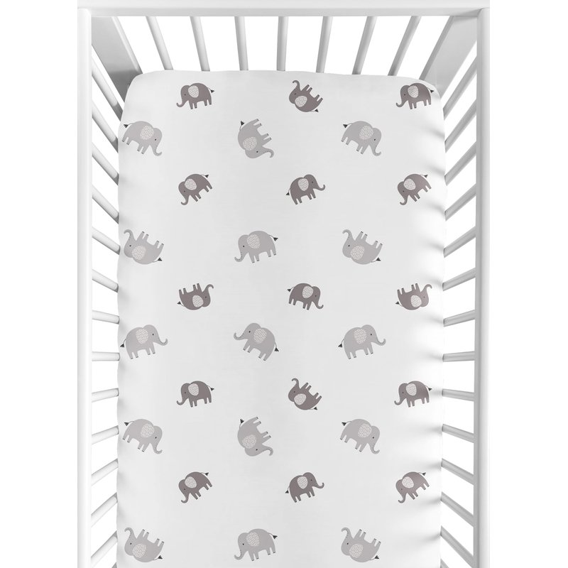 - This brushed microfiber crib sheet features an exclusive design of grey and white modern boho bohemian jungle safari silver gray animal elephants print.