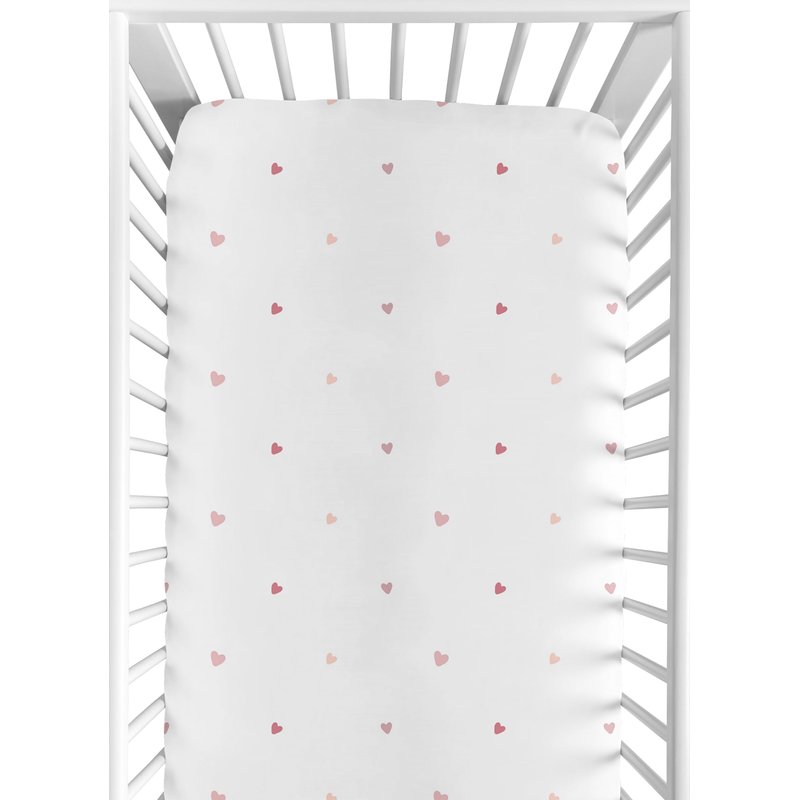 Sweet Jojo Designs Pink Boho Hearts Girl Baby Fitted Crib Sheet Infant Newborn Nursery Toddler Bed Room Shabby Chic Polka Dot Heart Blush Dusty Rose Mauve Bohemian for Boho Rainbow Cloud Collection