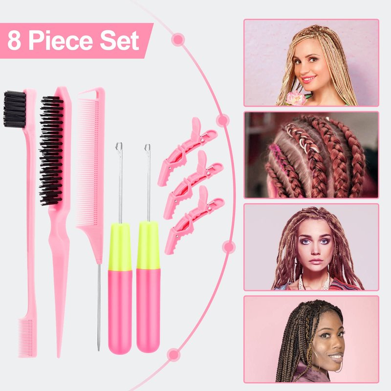 - Best braid tool set:Contains 2pcs Different Size Crochet Needle,3pcs Gator Clips,1pcs Edge Brush,1pcs Bristle Hair Brush,1pcs Rat Tail Combs Metal Pin.