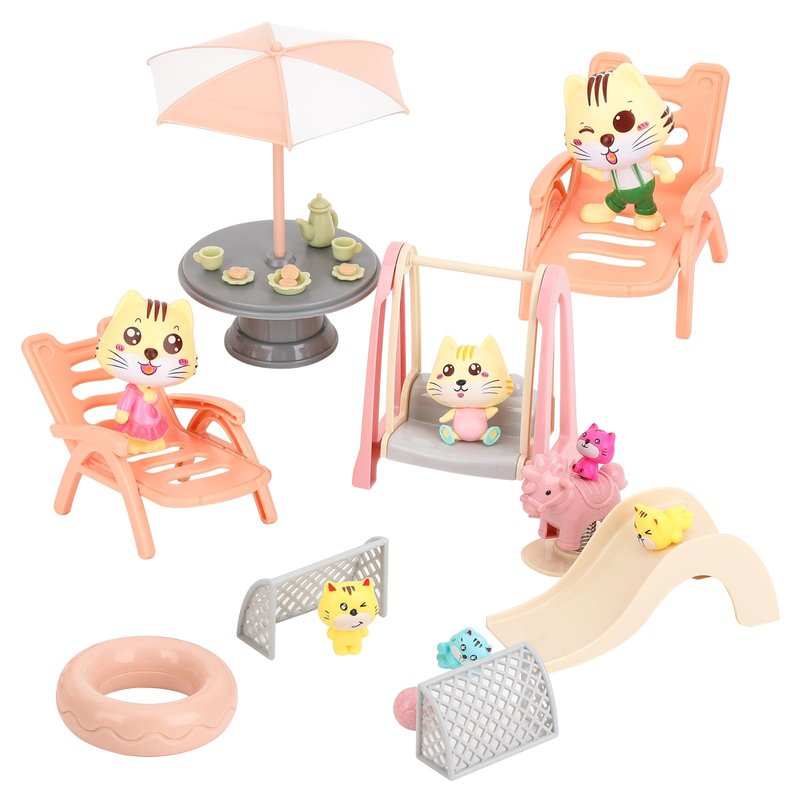 - Cartoon Cat Mini Playset: Sweetace cat toys for kids have plenty of accessories. The cat playset is crafted with precision and authentic detail to create a lifelike toy. Colorful accessories for a realistic experience.