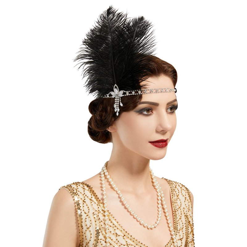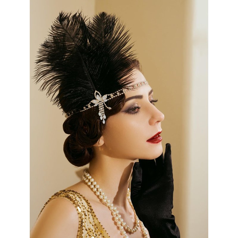 - 【Design】The 1920s headpiece with soft fluffy feather and sparkling rhinestone, creates a retro and attractive look. Go back to roaring 20s with the fabulous flapper Headband!