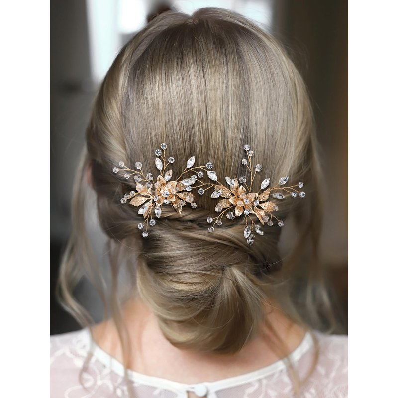 - 【Great Accessories】These hair pins are best choice for bride, bridesmaids, mother of the bride. its flowerlike design can be perfectly match with wedding dress or some special daily outfits. They are easy to use, just push into your hairdo and the wire can be adjusted due to your hairstyle. The shiny hair pins will match your charming wedding or dress, and will add the right amount of glitter and charm for your hair.