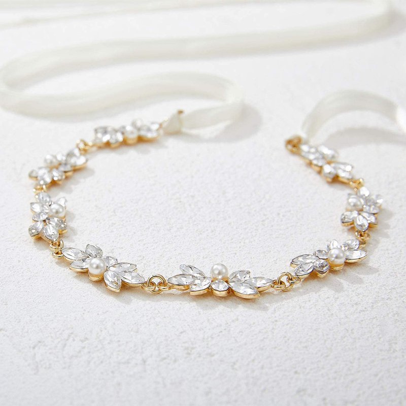 - ❀ This flower girl headpiece is adorned with sparkling crystal flowers and leaves. Available on the soft adjustable ribbon that stays comfortable on your girl's head.