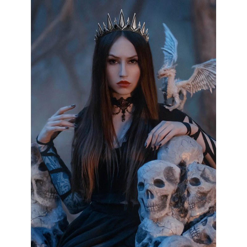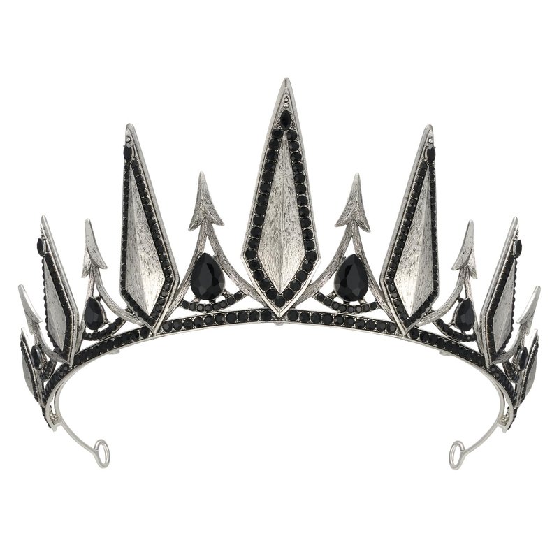 SWEETV Gothic Crowns for Women Black Tiara Queen Crown Witch Hair Accessories for Costume Halloween Prom Party, Silver