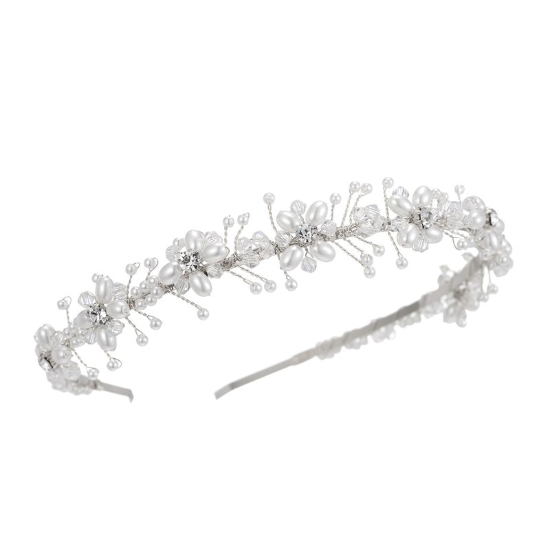 SWEETV Silver Bridal Headband Crystal Tiara for Women Pearl Wedding Headpieces for Bride Hair Accessories for Prom Birthday Party